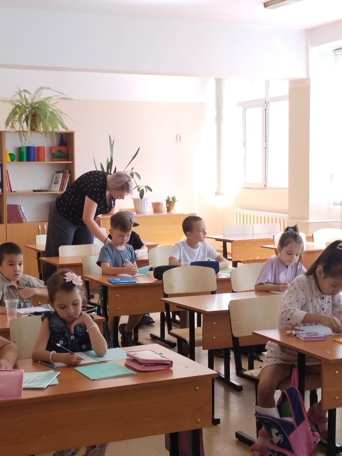 В Гимназии #83 проводится предшкольная подготовка "Малышкина школа". Первый день учёбы в школе. Детки занимаются с интересом. Активно выполняют задани