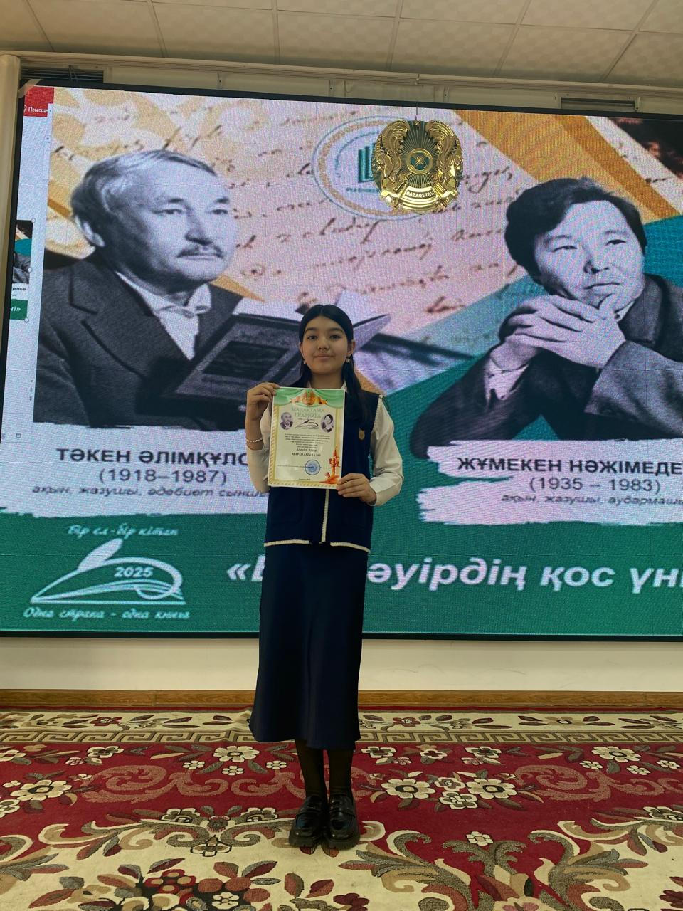 В рамках проекта «Оқуға құштар » Аманбек Адина, ученица 6 «ғ» класса гимназии №83, приняла участие в мероприятии, проводимом в рамках республиканской акции «Бір ел – бір кітап». Классный руководитель Алтыбаева А.Н и библиотекарь Абдуалиева Т.А.