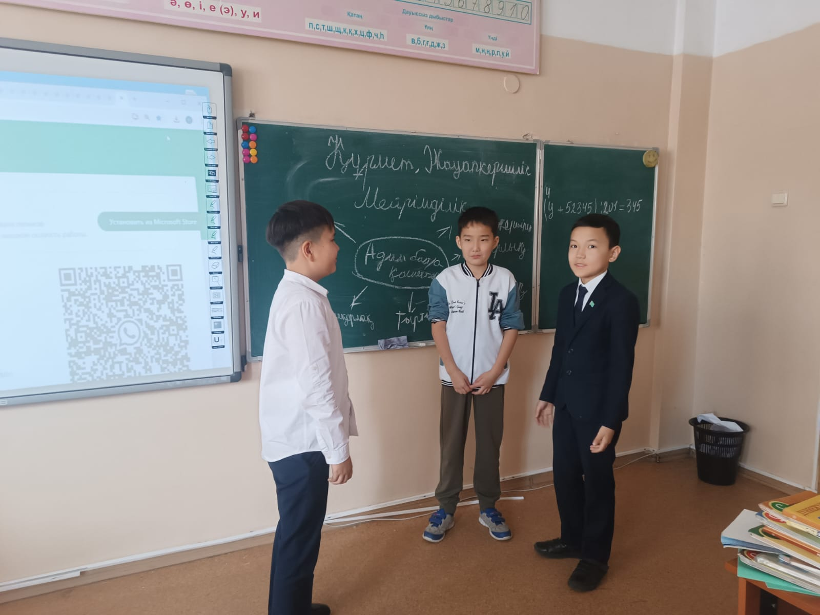 Классный час был организован учениками 4 «ғ» класса гимназии с театрализованным представлением, пропагандирующим совесть, честь, ответственность, спра