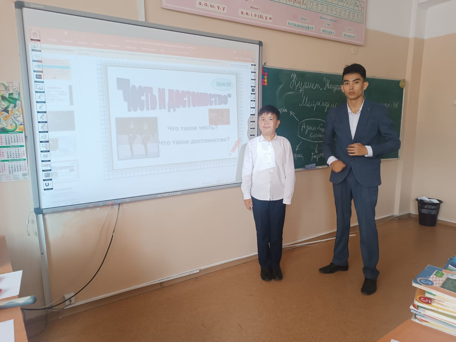 Классный час был организован учениками 4 «ғ» класса гимназии с театрализованным представлением, пропагандирующим совесть, честь, ответственность, справедливость и доброту