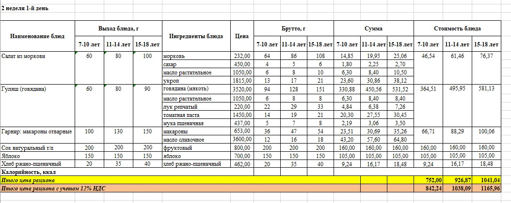 Договоры по питанию